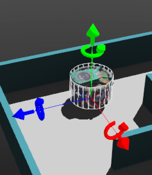 When you click on a robot in the simulation window, red, blue, and green arrows will appear. You can move the robot to any position by grabbing this arrow with the mouse. Note that the robot will not be displayed until the program is started.